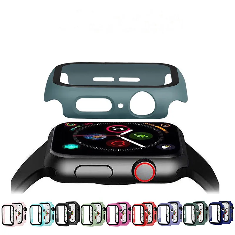 Name: Cristal + funda para Apple Watch serie 6 5 4 SE 44mm 40mm para carcasa de reloj Apple 3 2 1 42mm 38mm, Protector de pantalla + Accesorios para reloj